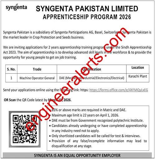 Syngenta Pakistan Limited Apprenticeship Program 2026 Online Apply | Syngenta Jobs Machine Operator General & Computer Operator | Syngenta Careers for DAE Diploma Holders | Syngenta Apprenticeship in Karachi Plant | Syngenta Jobs April 2026 | Apply Online for Syngenta Apprenticeship via Google Form | Syngenta Pakistan Jobs for Fresh DAE Graduates
