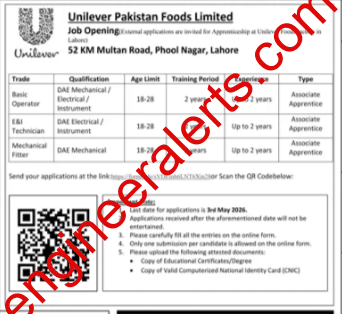 You can apply online through Unilever Pakistan’s careers website or scan the QR code provided in the official advertisement.